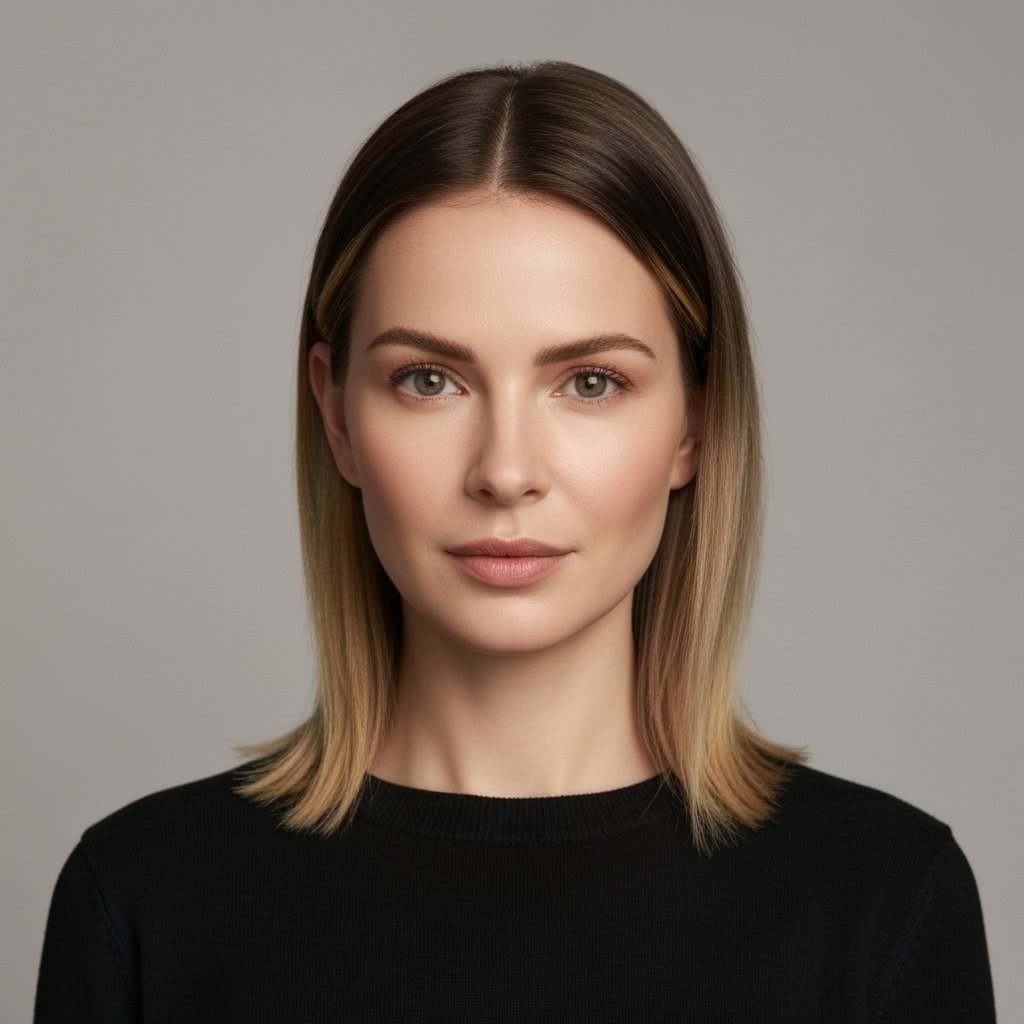 Katarína (35 years old) from Slovakia – Beauty type: Slavic; A woman (35 years old) with a soft oval face, gentle features, and smooth cheekbones. Fair skin with a neutral tone. Almond-shaped brown eyes. Straight or slightly rounded nose. Hair dark blonde to light brown, straight, medium thickness. Fuller natural lips.